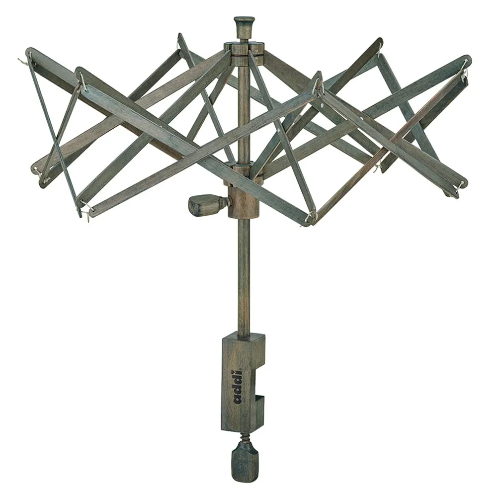 De parapluhaspel houdt je streng open en laat hem soepel ronddraaien terwijl de winder de draad afhaalt.