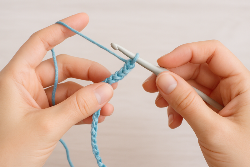 Houd de haaknaald in je dominante hand en de draad in je andere hand.