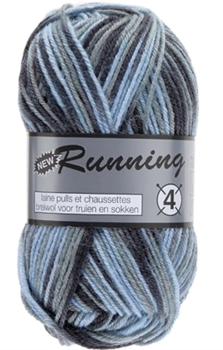 Sokkengaren van Lammy Yarns, New Running 4 is voor naalden 3-4. De bollen van 50 gram met een looplengte van 150 meter en bestaat uit 70% wol en 30% polyamide. Voor een paar grote sokken heeft u 3 bollen nodig en voor een trui maat 36 10 bollen.