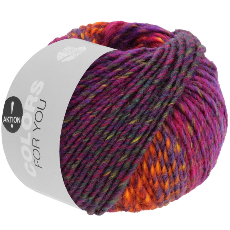 Colors for you van Lana Grossa zijn 50 grams bollen met een verrassend kleurverloop en bestaat uit 55% merino en 45% acryl. Met een looplengte van 90 meter maakt u met 2 bollen al een col of een muts.