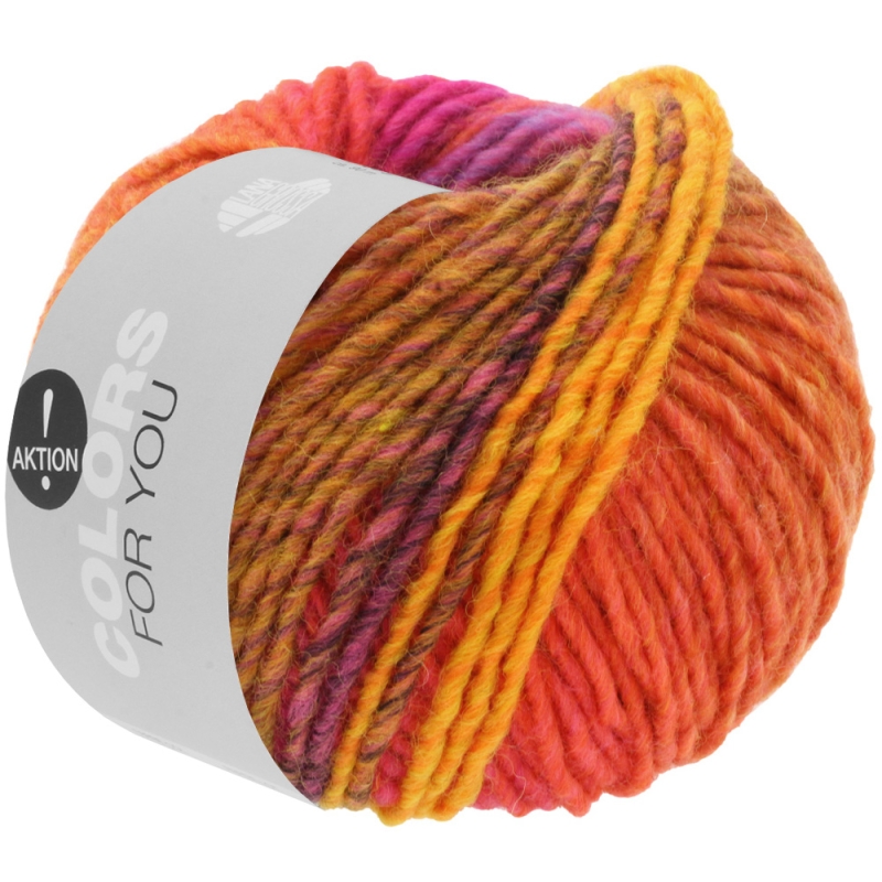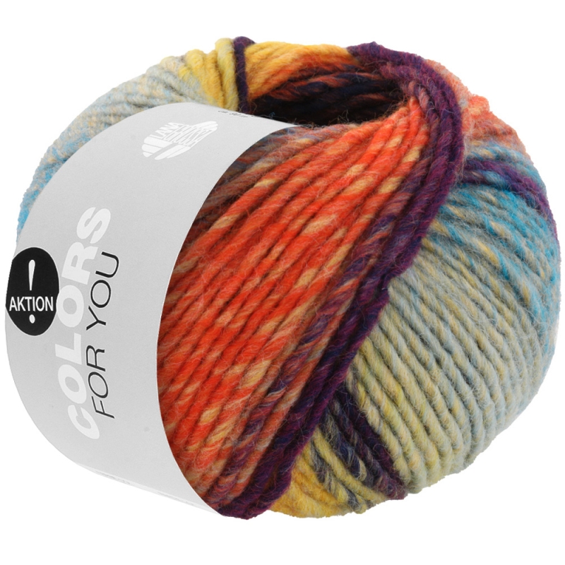 Colors for you van Lana Grossa zijn 50 grams bollen met een verrassend kleurverloop en bestaat uit 55% merino en 45% acryl. Met een looplengte van 90 meter maakt u met 2 bollen een col of een muts.