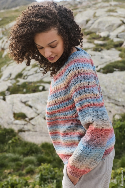 Of ze nu breed of smal, zacht of opvallend zijn: Lana Grossa Gomitolo garens creëren strepen in kleurexplosies, moeiteloos rechtstreeks van de bol. Ze voelen altijd in het seizoen, wanneer de zomer ten einde loopt en de natuur de teugels laat vieren, heeft hun kleurenspel een bijzonder opbeurend effect.