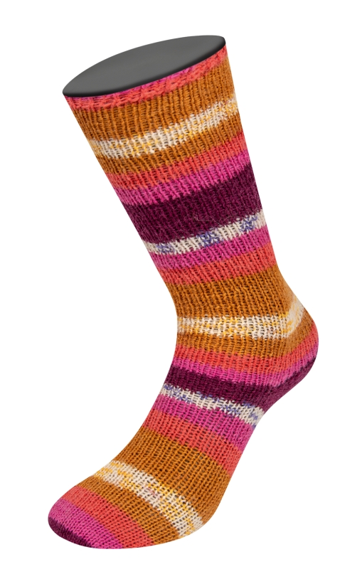 Lana Grossa Aktion sokkengaren zijn bollen van 100 gram, voor een paar sokken, een bol met een looplengte van 420 meter. Lana Grossa meilenweit 100 aktion bestaat uit 75% wol en 25% polyamide. Gebruik naalden 2,5-3,0 40 naalden en 28 steken voor een proeflapje. Door het kleurverloop krijgt u de mooiste sokken in de leukste kleuren. Dit garen is ook geschikt voor sjaals of een leuke muts.